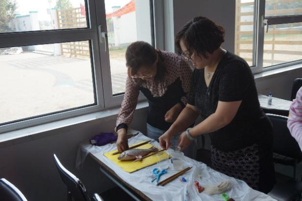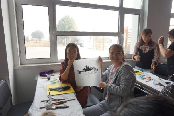 随后,老师们返回室内,学习了制作毛笔和鱼拓,感受传统文化之美。