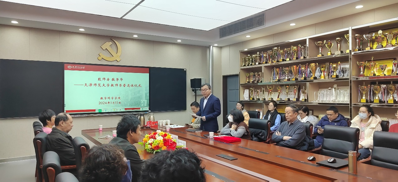 2024年1月11日,伟德国际1946在博理楼B区103举行2023年教师荣誉退休仪式。李宝毅、李建泉、尚春虹、王薇、边欣五位退休教师和院领导张宁、常慧宾、彭永刚、高红成、胡中华出席,五位荣休教师所在教研室教师代表参加。副经理胡中华主持仪式。