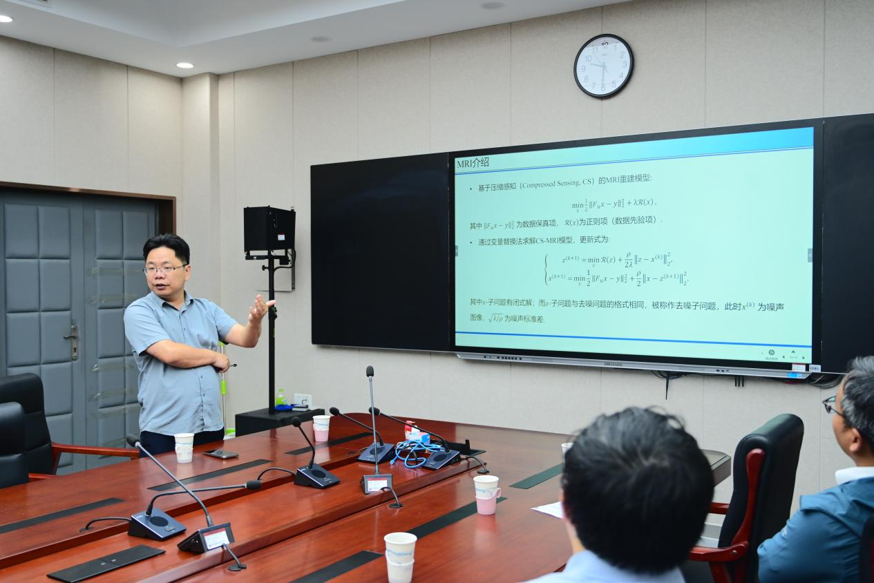 报告会上,曾铁勇教授系统介绍了其团队在MRI重建领域的最新研究成果。研究创新性地提出空间自适应自一致性正则项以优化k空间数据冗余性,并采用深度集成去噪器提升图像重建效率。团队还构建了基于即插即用框架的融合网络结构,开发了高频调制Transformer模型,有效融合全局与细节信息。