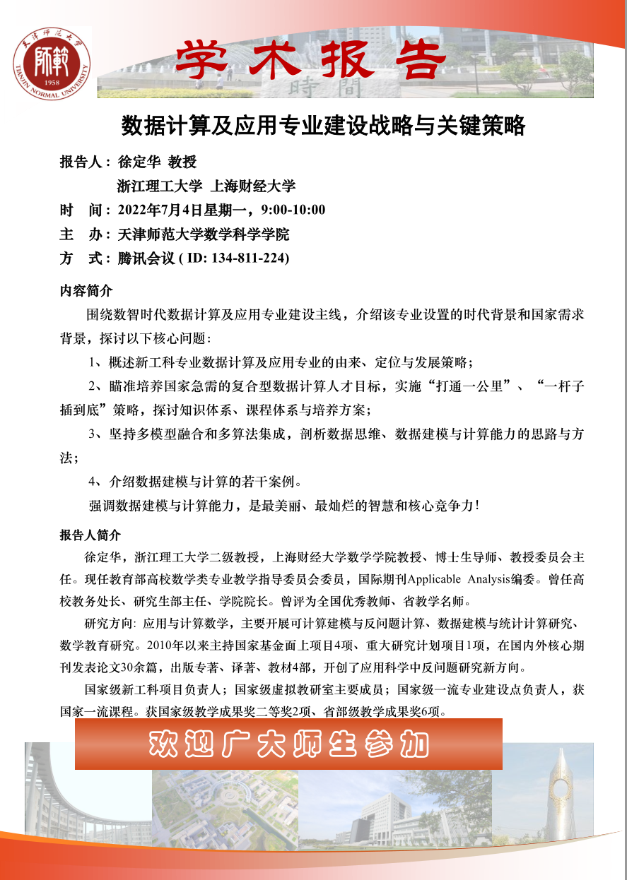 【预告】学术报告(2022-10)7月4日报告--数据计算及应用专业建设战略与关键策略