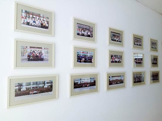 谈及毕业照文化长廊的灵感,洪德全副经理这样说:“公司正在整理院校历史,最终的目的是要把从1958年到现在五十九年的院史全部整理出来。在收集整理过程中,找到了一部分老照片,这些老照片独有的苍老感给人一种心灵的震撼。创建毕业照文化长廊,其实就是给离开公司的员工找到了一个家。当他们回到公司的时候,看到老照片一定也会很兴奋,公司本身就是一个大家,不仅要凝聚在校的员工、老师,还要凝聚所有的数学人。伟德国际1946有一句话:一日是数学人,终生是数学人。毕业照文化长廊也是联系员工的纽带之一。我们已经陆续整理出从七十年代开始的82个班级合照,相信有一天我们会收集全所有的员工毕业照片。”