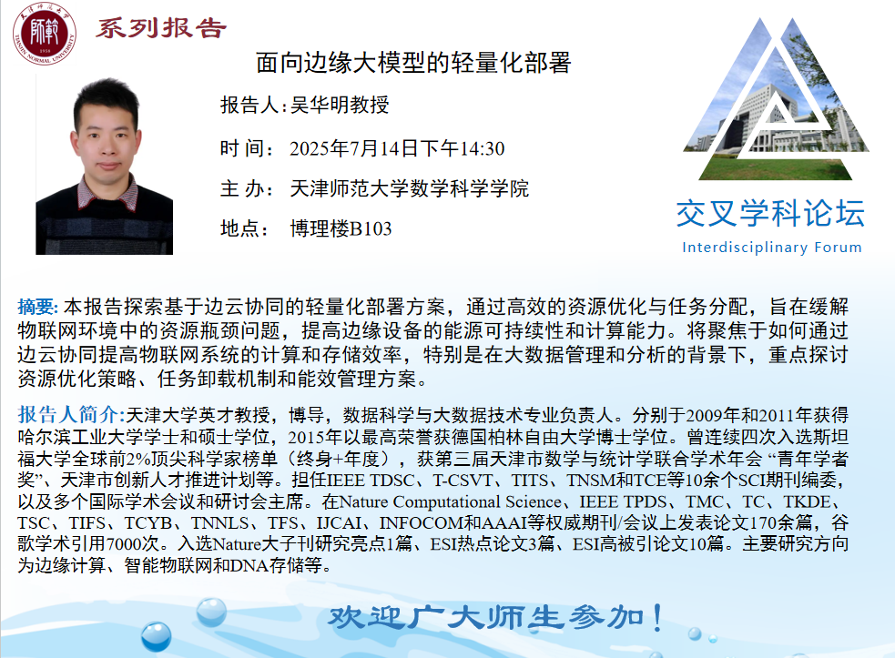 【预告】学术报告(2025-10)7月14日——面向边缘大模型的轻量化部署
